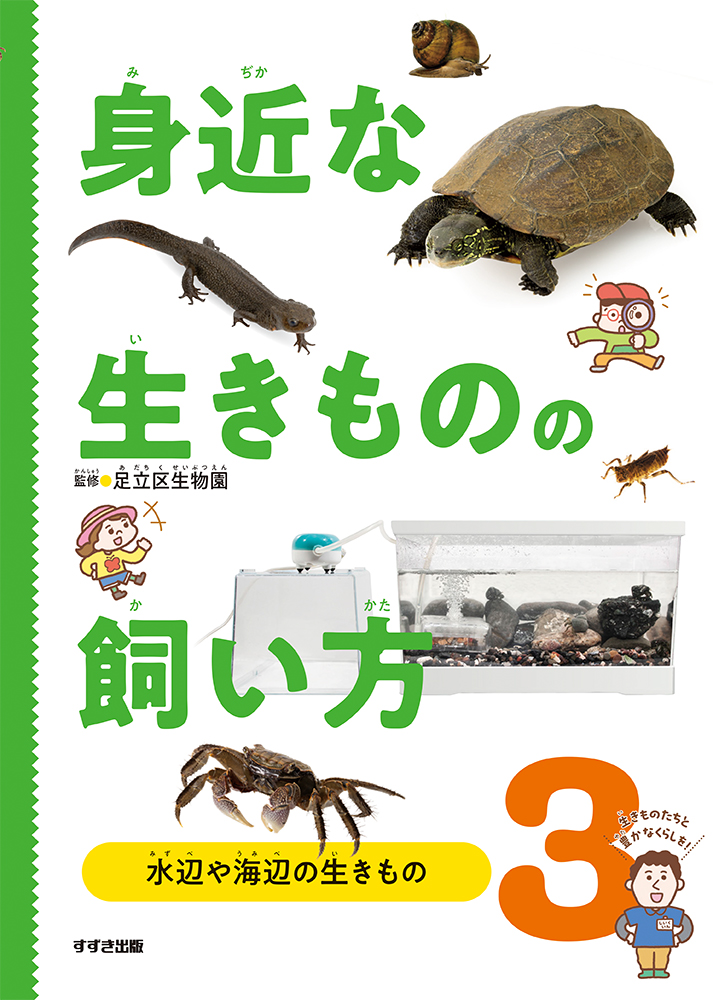 知っているようでじつはよく知らない「身近な生きものの飼い方」を、足立区生物園の飼育員さんに指導してもらいました。学校や家庭ですぐに役立つコツや注意点が満載です。生きものの命を大切にするために、必ず知っておきたい知識をコンパクトにまとめました。子どもといっしょに大人も学んで、生きものとの暮らしを豊かにしましょう。3巻では、ヤゴ、アメンボ、タニシ、メダカ、イモリ、カメ、川のエビ、河口のカニ、海のカニ、ヤドカリの飼い方を紹介します。